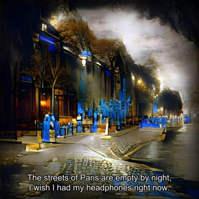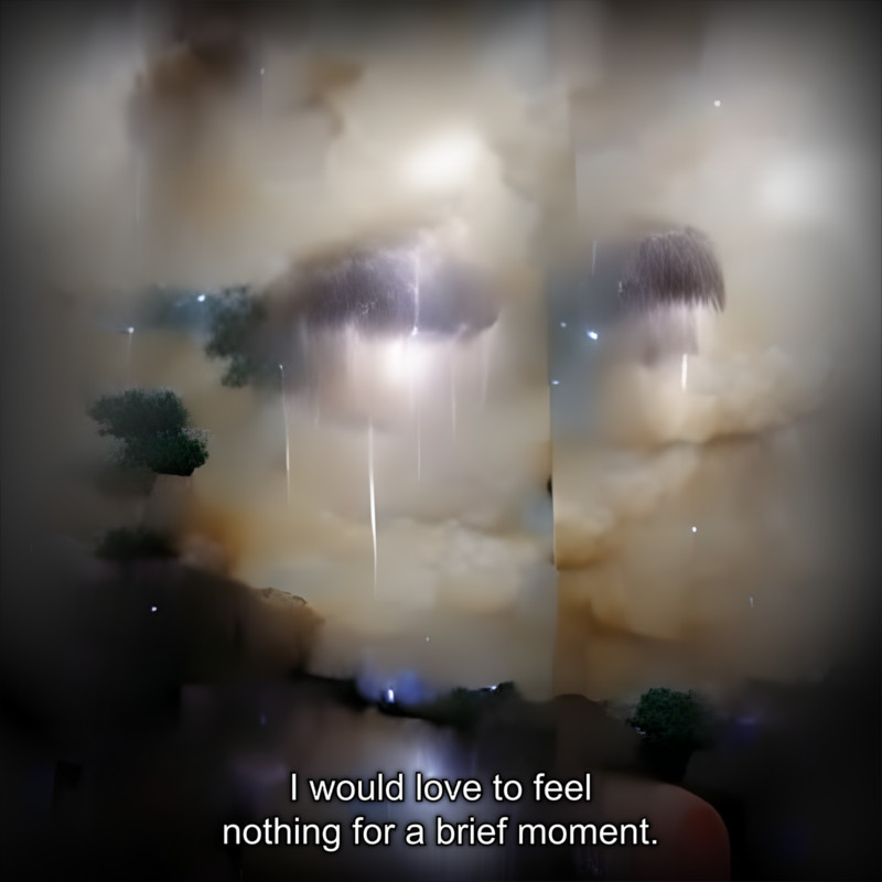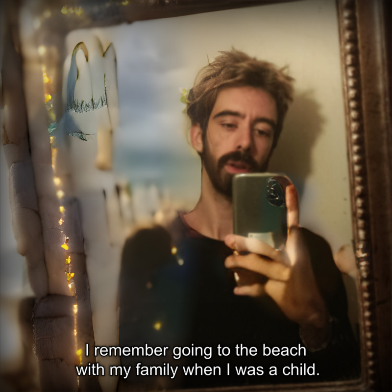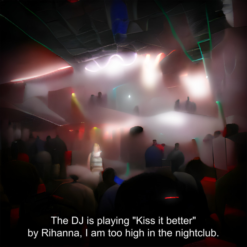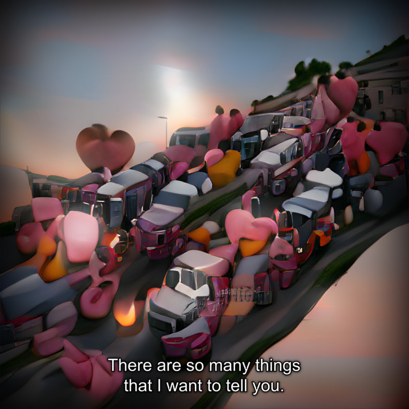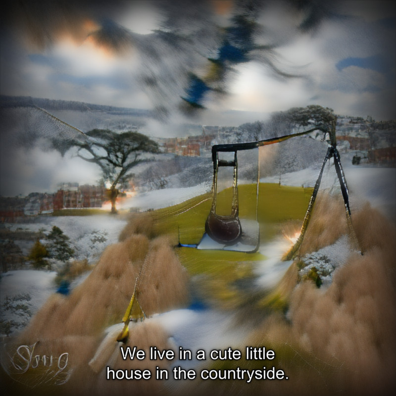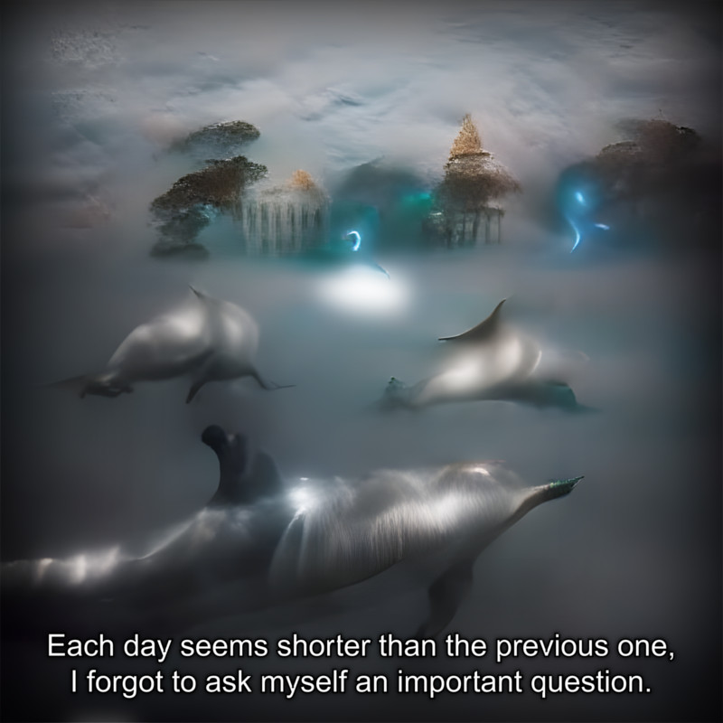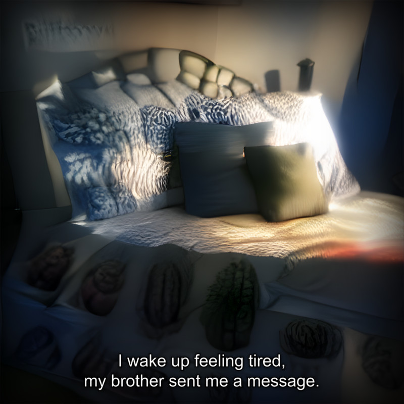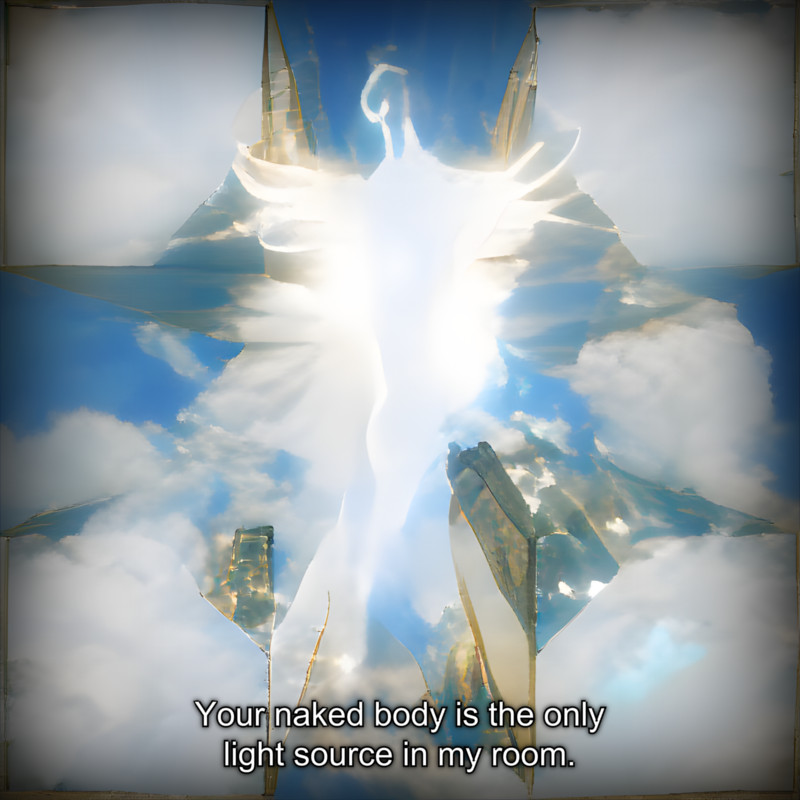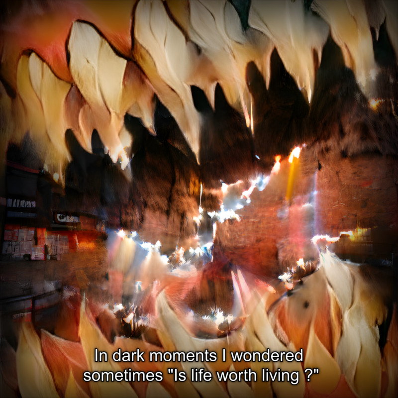 The texts are written by the artist and the pictures are created with CGI and photography combined to different AI programs including VqGAN, Dalle2 and Stable Diffusion.