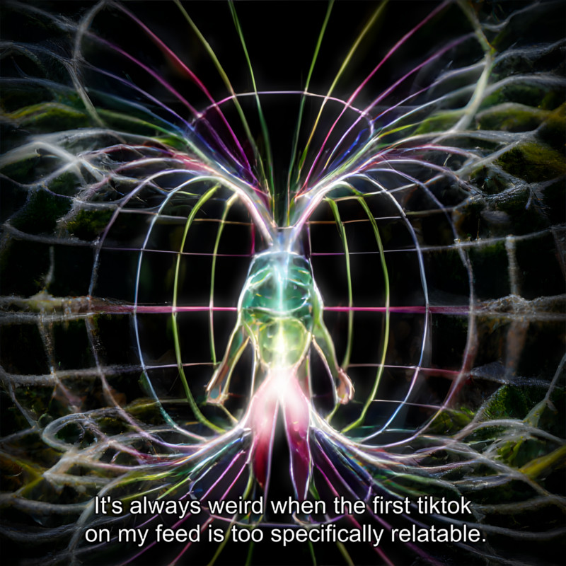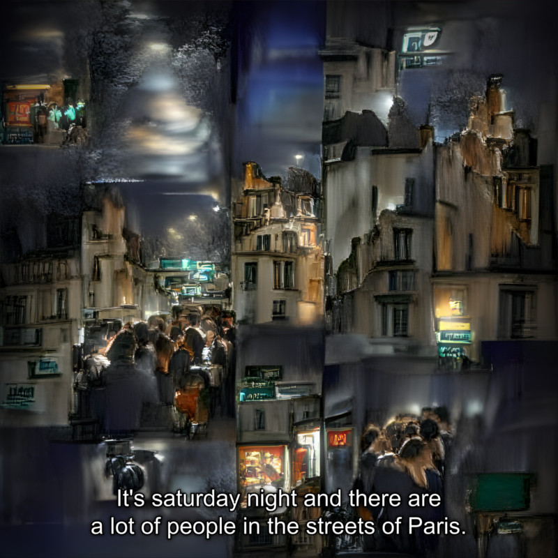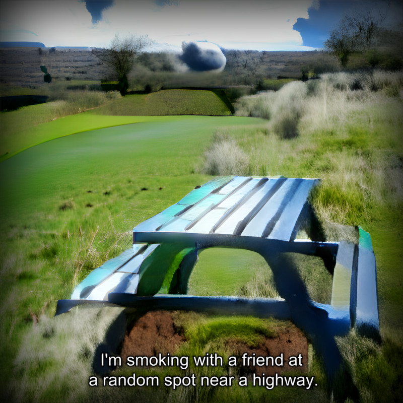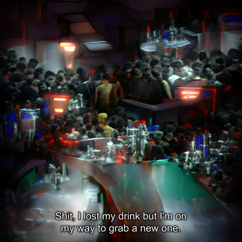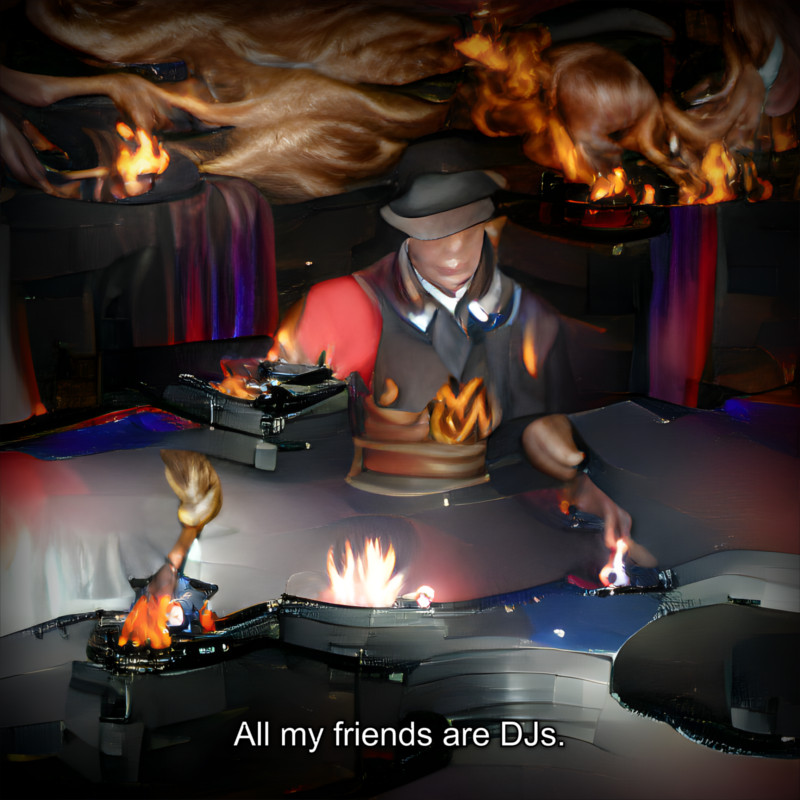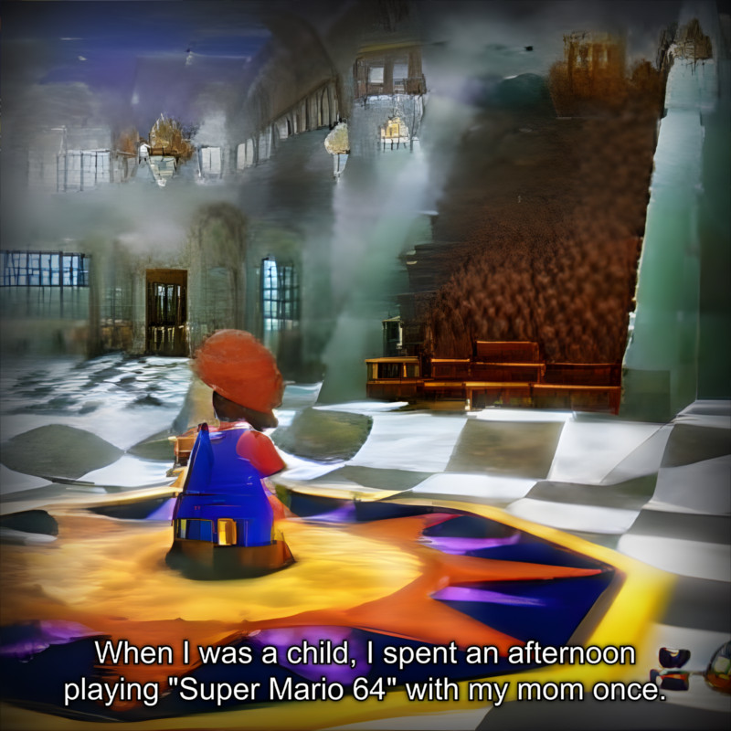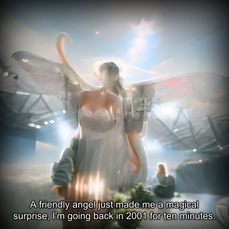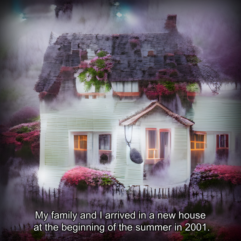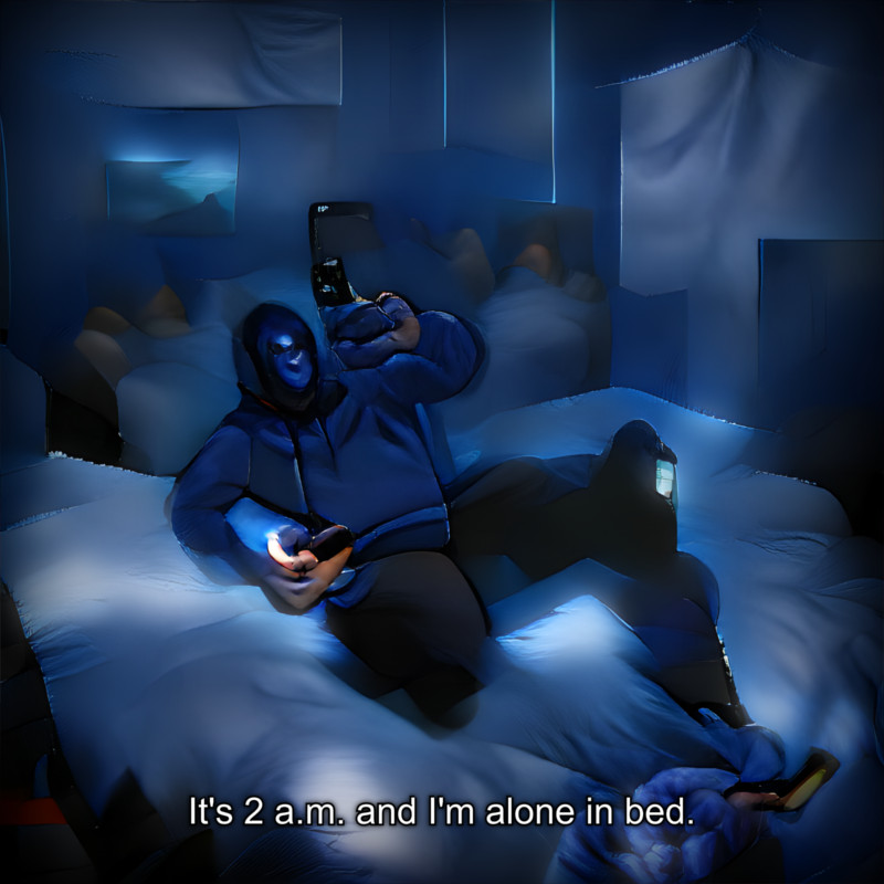 The texts are written by the artist and the pictures are created with CGI and photography combined to different AI programs including VqGAN, Dalle2 and Stable Diffusion.