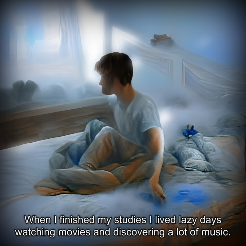 Happiness does exist is a series of illustrations started in october 2021. Those short stories are a naive exploration of a wide range of emotions. The line between reality and fantasy is blurry, memories and dreams are merging together.